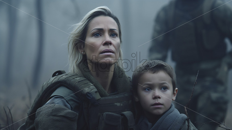 Generative AI close-up portrait of a soldier with a dirty face during a battle