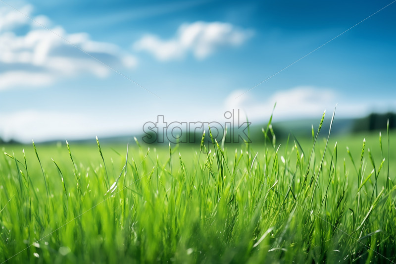 Generative AI blades of grass that can be seen up close in a clearing