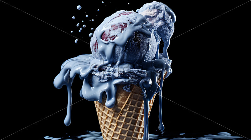 Home » Shop » AI Illustration » Generative AI ice cream on melting cone, on a black background