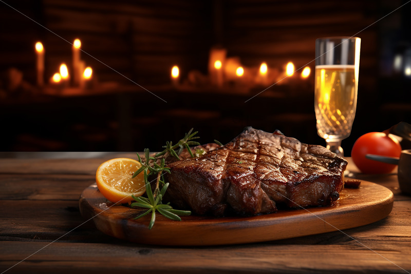 Generative AI on a plate a piece of cooked meat and a glass of beer