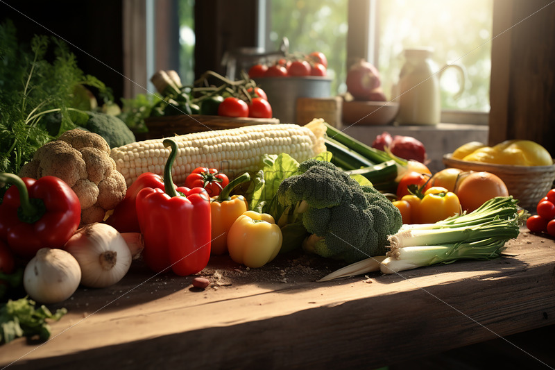 Home » Shop » AI Illustration » Generative AI on a table there are many types of fresh vegetables