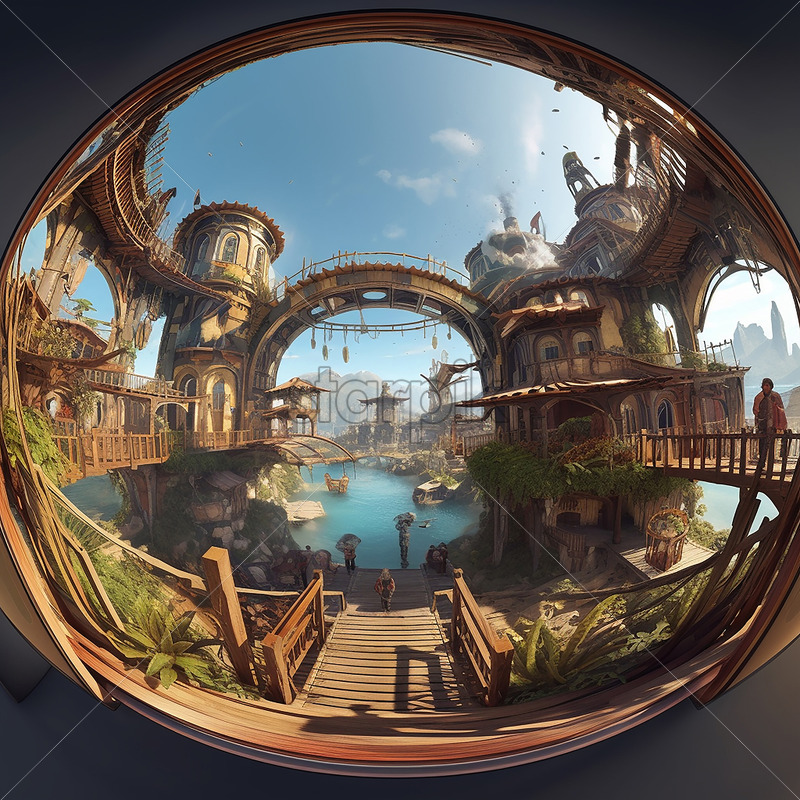 Generative AI passage that reflects the point of view of a character connected to a VR headset, fantasy world with bridge and castle