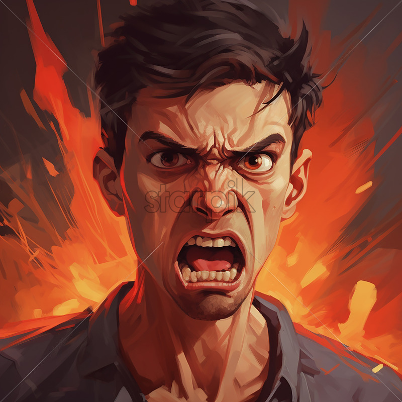 Generative AI portrait of a 30-year-old adult who is very angry