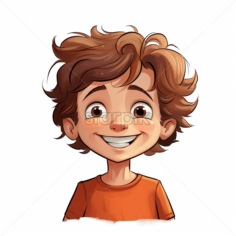 Generative AI portrait of a smiling boy on a white background