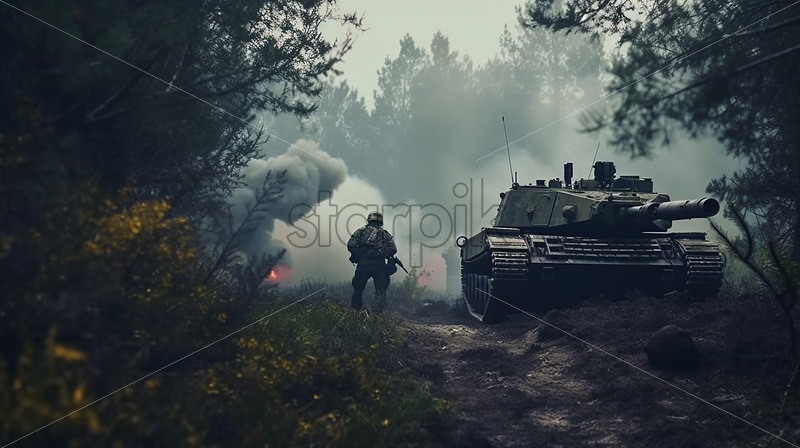 Generative AI a wooden cabin located on a slope in the forest with mountains in the background