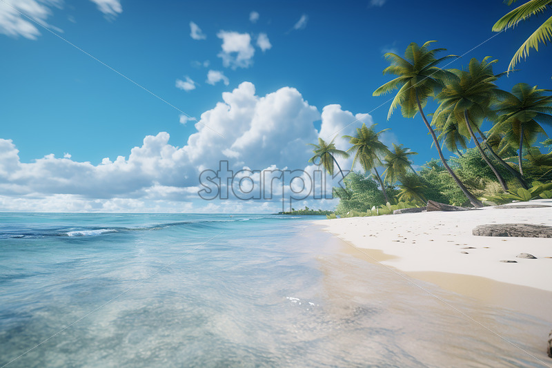 Generative AI the beach of a tropical island full of sand and palm trees