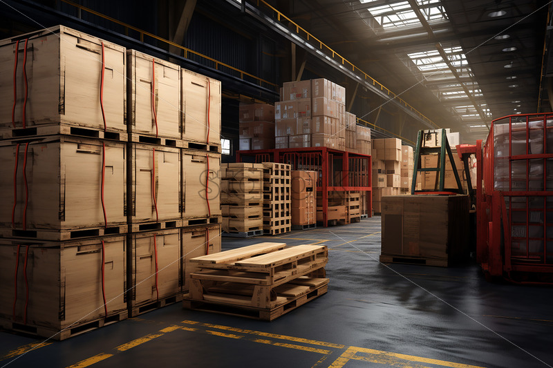 Generative AI the inside of a huge warehouse with many boxes