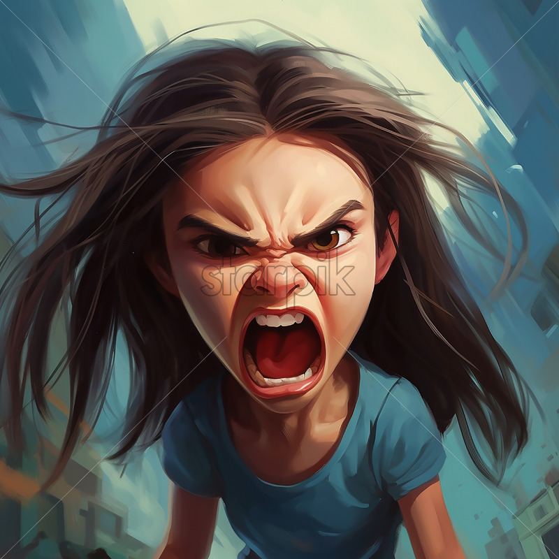 Generative AI the portrait of a 10-year-old girl who has a facial expression of amazement