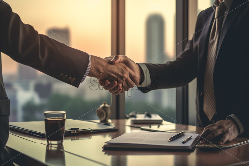 Cityscape of Frankfurt downtown at sunset, Germany. River Main with moored boats, skyscrapers with illumination on the background