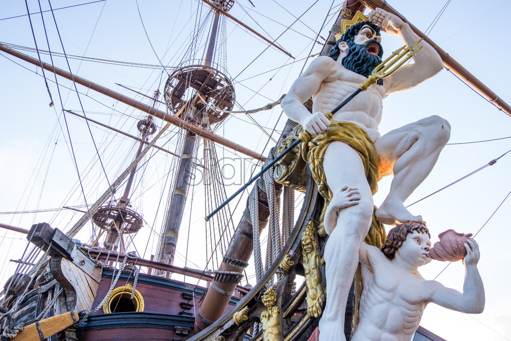 Home » Shop » photo » GENOA, ITALY – AUGUST 05, 2018: Galleon Neptune front side in the old harbour at sunset