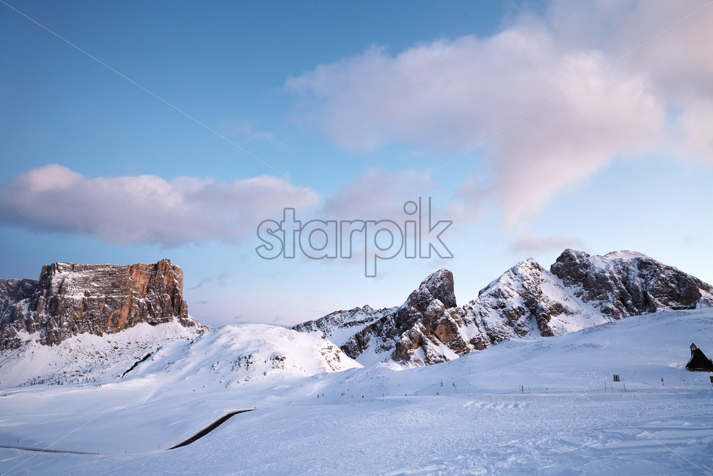Home » Shop » photo » Giau Pass in winter season at pink sunset. Italy beauties