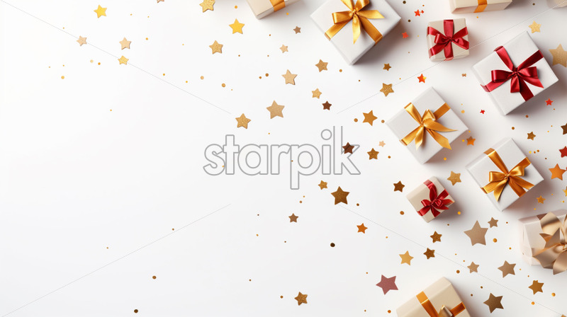 Gift box and stars confetti on isolated white background