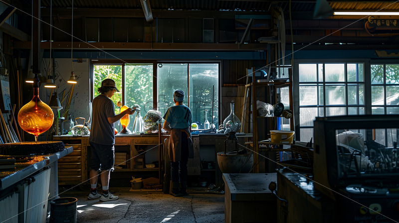 Glass artists gather at a local glass studio or art center for hands-on glass blowing workshops.