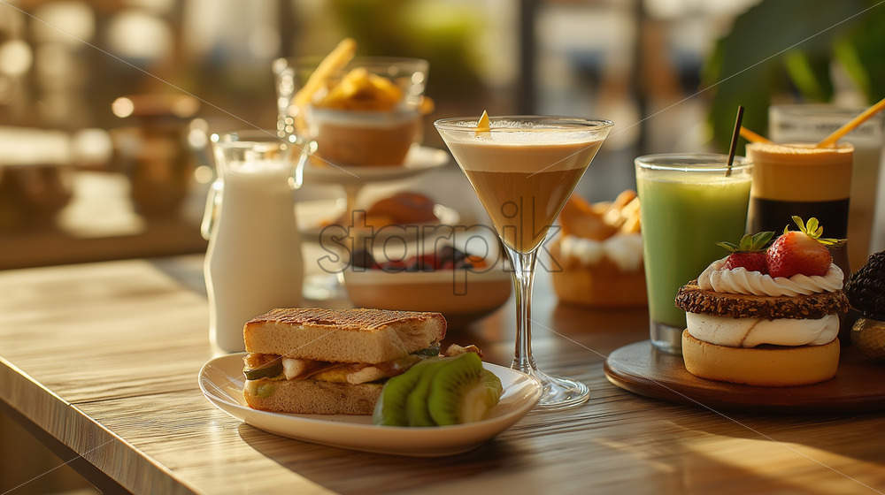 Home » Shop » AI Illustration » gourmet breakfast and latte