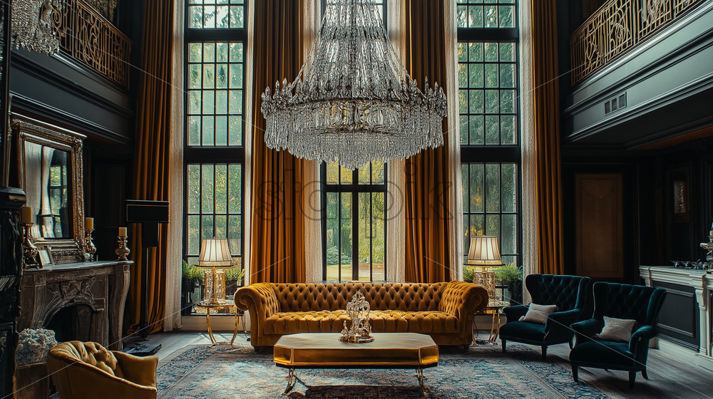 Modern house in the country side, clear glass wall and roof with cozy lounge and book shelves an elegant ambience with white theme and indoor plants