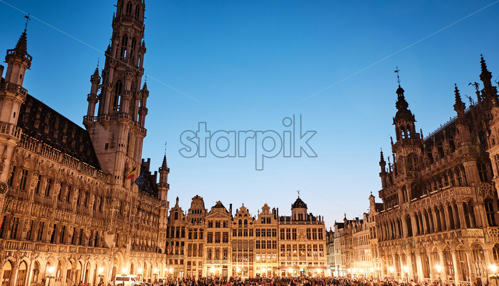 Grand Place with people at evening. Blue Hour in Brussels, Belgium Royalty Free Stock photo