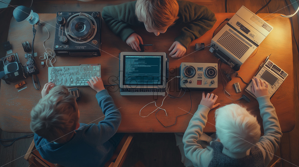 kids designing quantum circuits on digital tablets