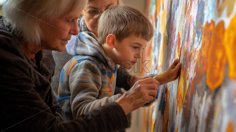 Woman painter wearing black clothes painting woman model face with hat drawing with red brush at a workshop Royalty Free Stock Video Footage