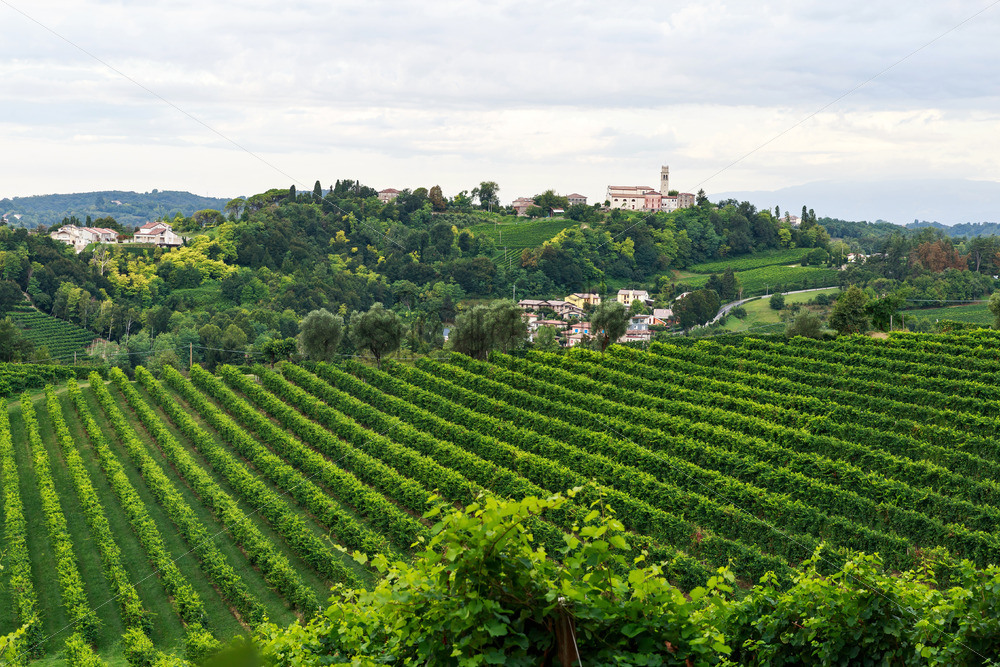 Grapes growing in vineyards and villa in Conegliano, Italy