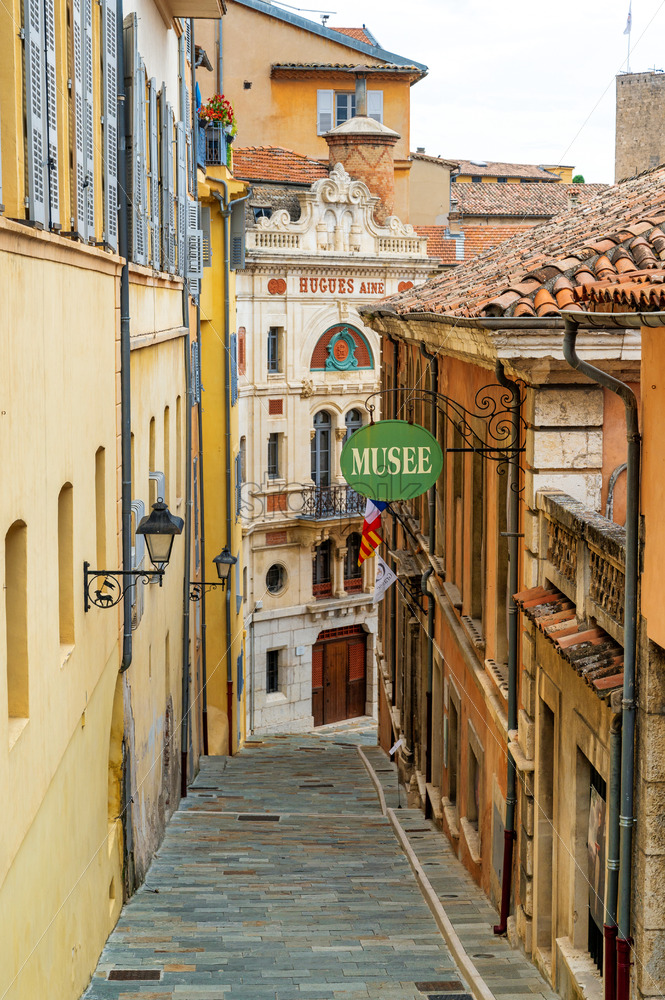 GRASSE, FRANCE – SEPTEMBER 3, 2021: Street scape of the town. Traditional buildings, narrow street