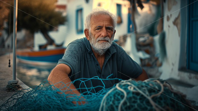 Home » Shop » Uncategorised » Greek fisherman repairing nets