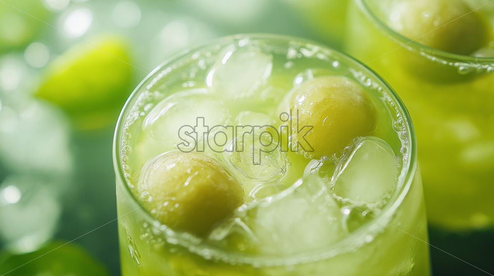 Close up of a glass of an iced orange juice matcha on a table at a cafe. Vertical Royalty Free Stock Video Footage