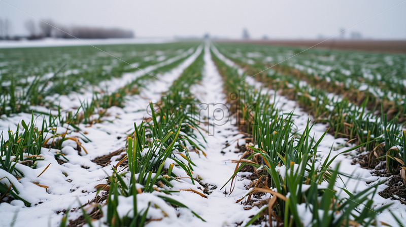 Green wheat that barely comes out of the ground in winter