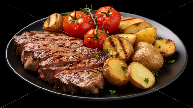 Home » Shop » Uncategorised » Grilled beef with potatoes and vegetables on a plate