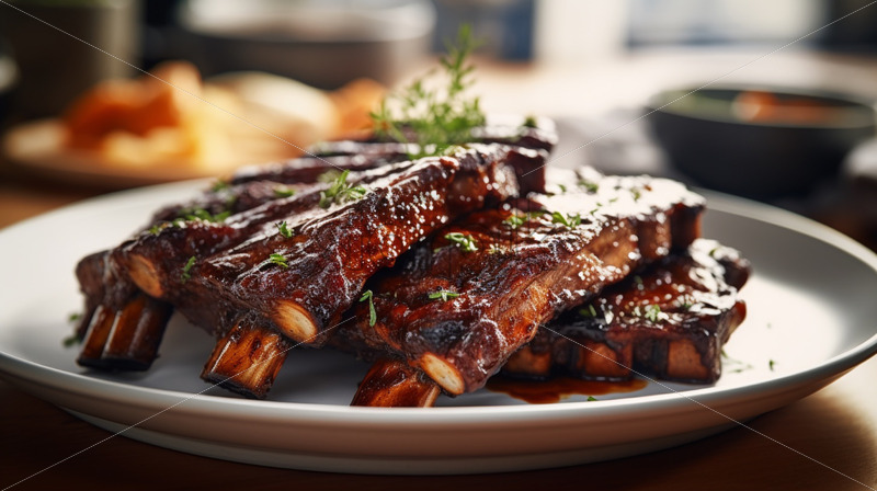 Close up of a Sirloin Steak with Barbecue Sauce and micro-plants on the side Royalty Free Stock Video Footage