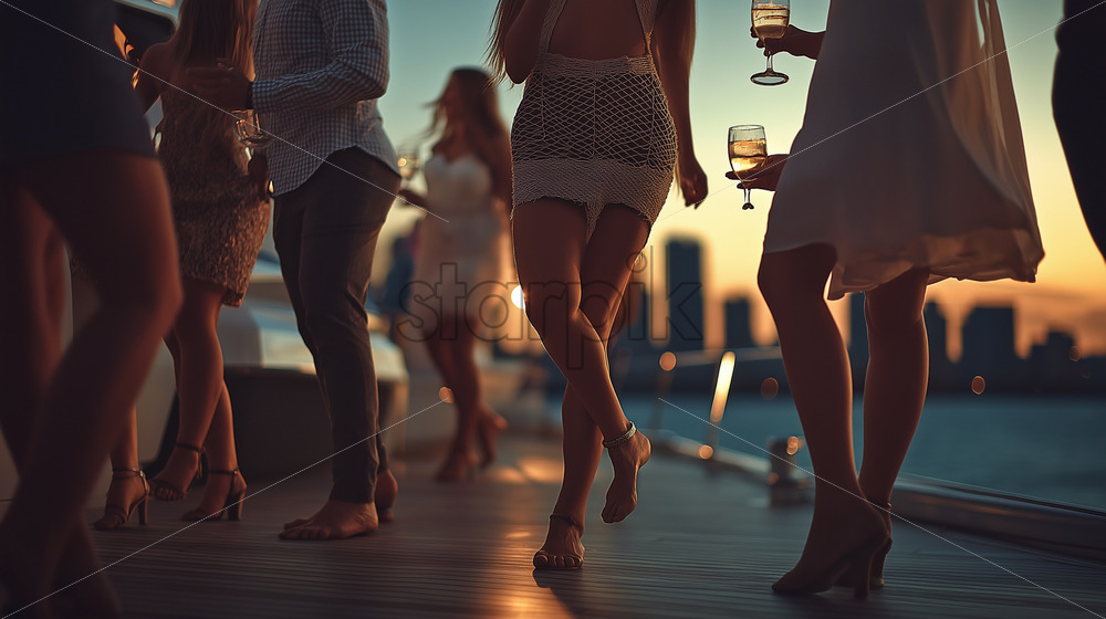 Home » Shop » AI Illustration » group of friends dancing on a yacht summer party