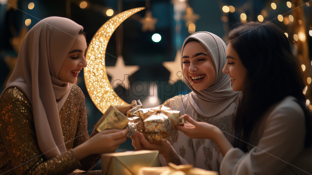 Video – group of friends exchanging Eid gifts and taking photos