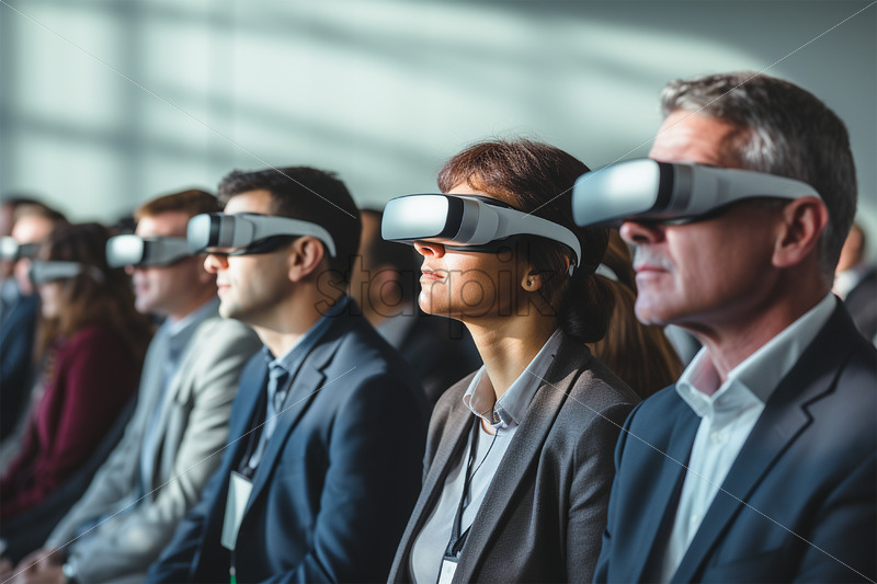 Group of people at a conference in VR glasses business themes, virtual reality