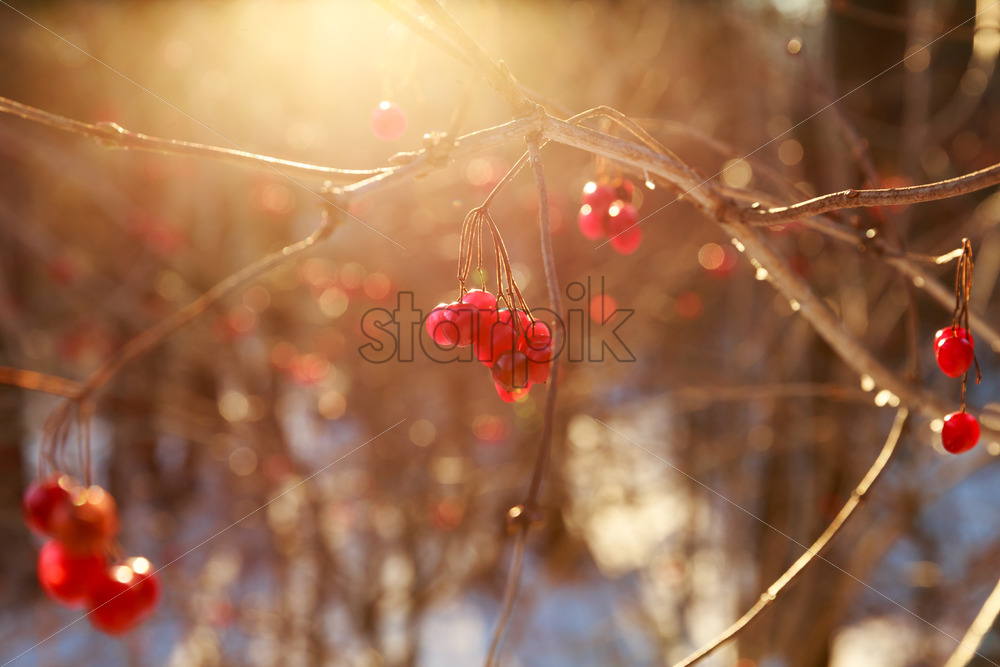 Close up photo of red ripe cherries with green leaves on a tree, with drops of water in the rain.