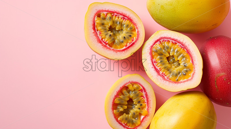 Home » Shop » Uncategorised » Guava and passion fruit, on isolate pink background