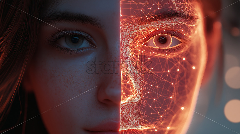 half face AI algorithms glowing