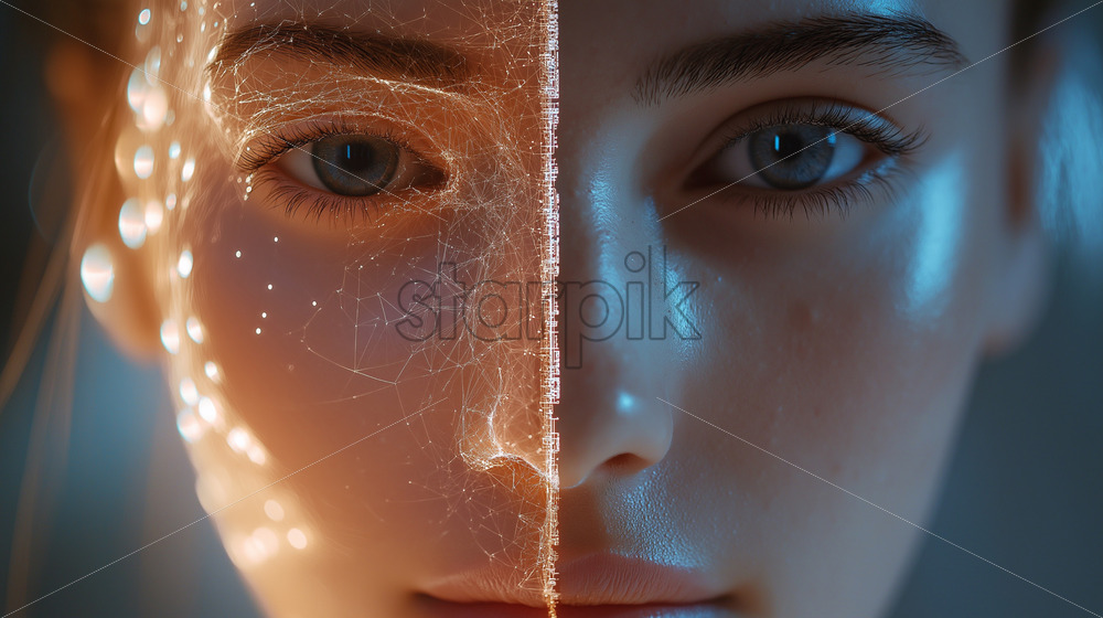 futuristic medical lab with a quantum computer analyzing human DNA, depicted as glowing helixes