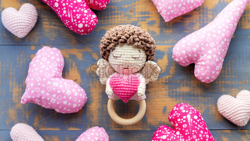 Woman in gray sweatshirt is knitting a toy using hooks and pink yarn Royalty Free Stock Video Footage