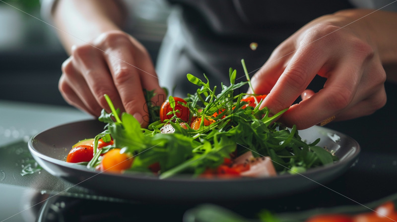 Close up of a woman’s hands cutting a Sirloin Steak with Barbecue Sauce and micro-plants on the side Royalty Free Stock Video Footage