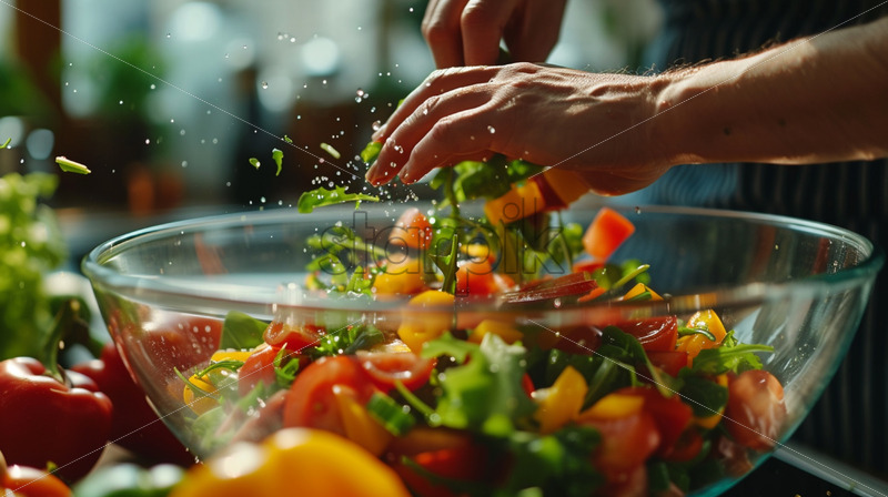 Home » Shop » Uncategorised » Hands tossing colorful salad in mixing bowl