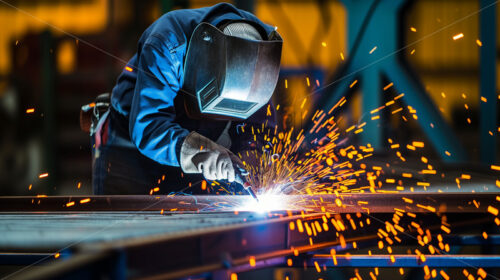 A cheerful photo capturing an aged plumber, sitting at the back of his truck after preparing and loading his equipment, wearing a gray fabric beret cap, blue monochrome checkered clothes, and blue denim pants.
