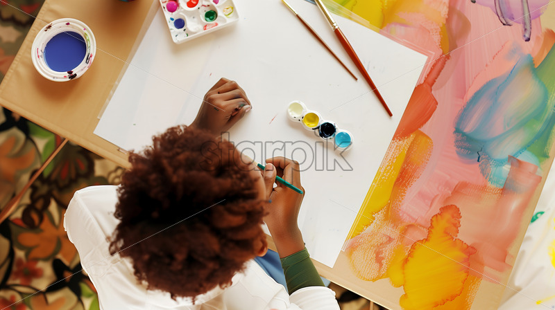 An individual engaging in therapeutic art activities like painting or drawing to express emotions.