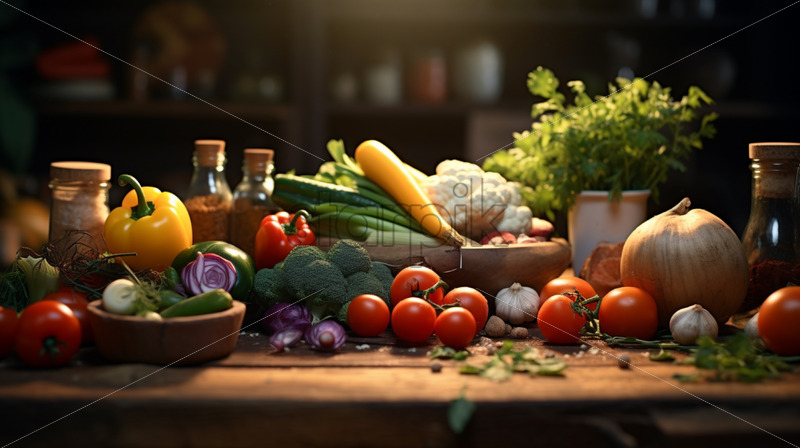 Top view salad ingredients – mixed salad greens, cherry tomatoes, olives, feta
