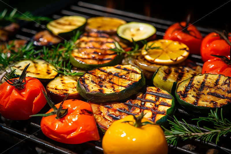 Close up of eggplants, potatoes, onions, peppers and courgettes cooking on a grill Royalty Free Stock Video Footage