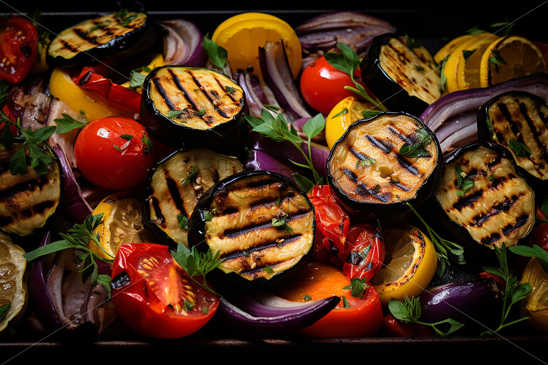 Close up of eggplants, potatoes, onions, peppers and courgettes cooking on a grill Royalty Free Stock Video Footage