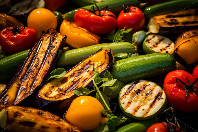 Close up of eggplants, potatoes, onions, peppers and courgettes cooking on a grill Royalty Free Stock Video Footage
