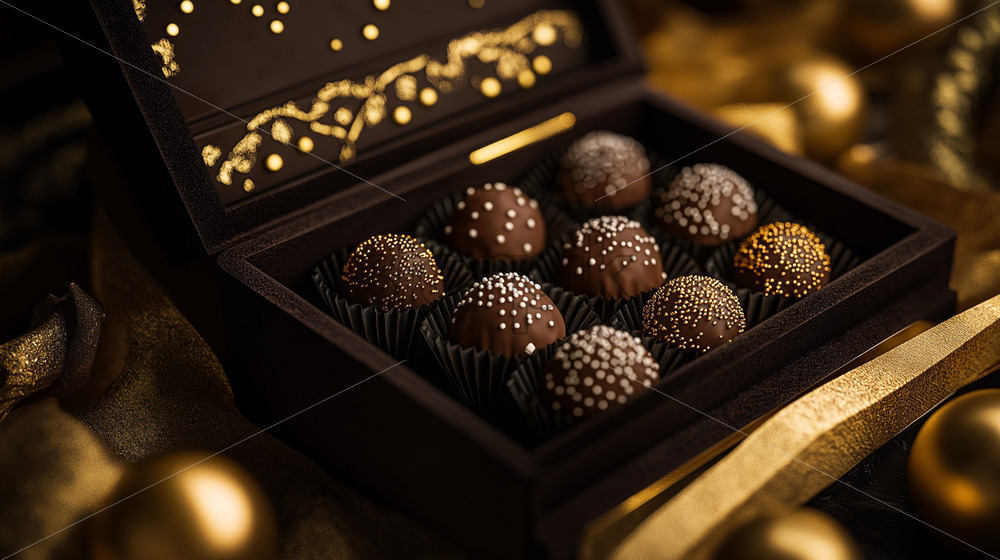 high-fashion chocolate box with gourmet truffle and gold flavours