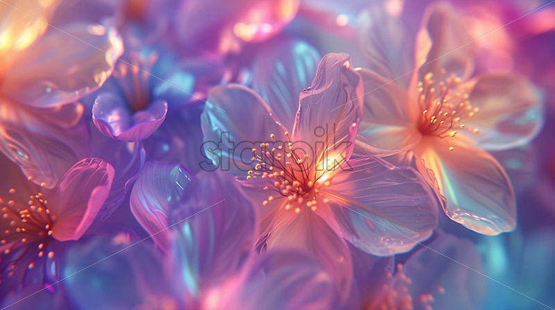Holographic liquidity shaping an organic, cohesive structure, pastel colors