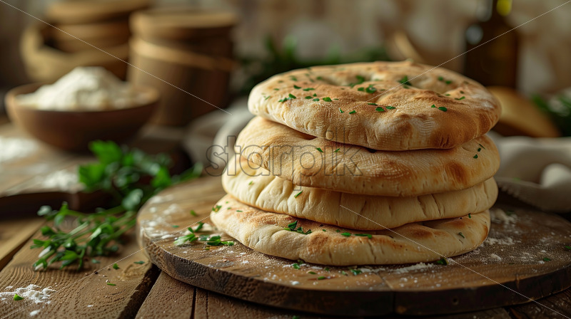 An assortment of bread products on a wooden table