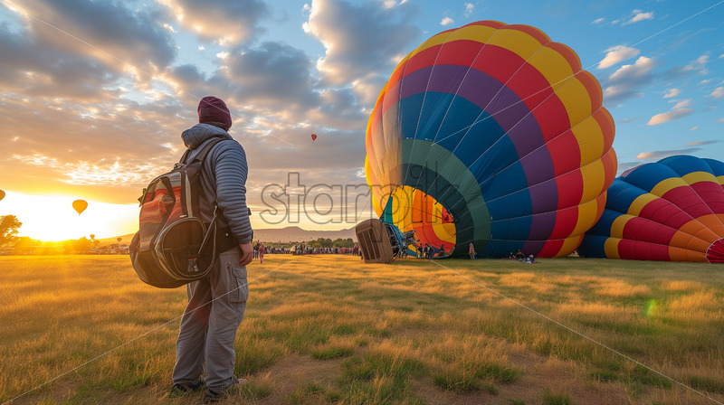 Hot air balloon pilot during the early morning preparations at the vibrant Albuquerque International Balloon Fiesta.