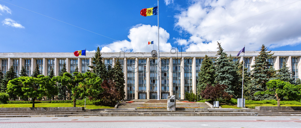 House of government of republic of moldova, stefan cel mare street in the chisinau downtown, blue sky and clouds, national square